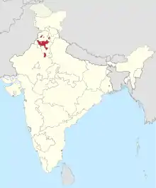 ![]() 1951 map of India. The Patiala and East Punjab States Union is shown forming enclaves in East Punjab. | |||||||||