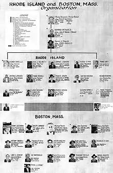 In the early 1910s, Gaspare DiCola became the most powerful Mafia boss in Boston, until he was murdered on September 21, 1916.[2] This allowed Gaspare Messina, a Sicilian mobster who had close ties to Bonanno crime family, in New York City to become the new boss of the Boston Mafia group.[3][4] The Providence Mafia group formed sometime in 1917, under Frank Morelli [5] who went on to control bootlegging and illegal gambling operations in Providence, Maine, and Connecticut.[6]