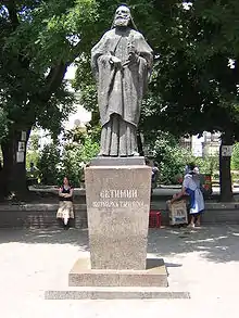 Patriarch Evtimiy Square (Bulgarian: площад „Патриарх Евтимий“, ploshtad Patriarh Evtimiy), more popularly known as Popa (Попа, "The Priest"), is a small urban square and a busy intersection in the centre of Sofia, the capital of Bulgaria. The square was named after Evtimiy of Tarnovo,[1] Patriarch of Bulgaria from 1375 to 1393 and one of the most important figures of medieval Bulgaria; a monument to Evtimiy by sculptor Marko Markov has adorned the square since 1939.