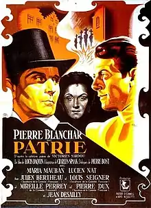 Patrie (English: Country) is a 1946 French historical drama film directed by Louis Daquin and starring Pierre Blanchar, Maria Mauban and Jean Desailly.[1] It was entered into the 1946 Cannes Film Festival.[2] Like the 1917 silent film of the same title it is based on the 1869 play by Victorien Sardou.[3] It was shot at the Epinay Studios in Paris. The film's sets were designed by the art director René Moulaert.