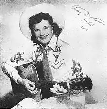 Rubye Rose Blevins (October 30, 1908 – May 3, 1996),[2] known professionally as Patsy Montana, was an American country music singer and songwriter. Montana was the first female country performer to have a million-selling single with her signature song "I Want to Be a Cowboy's Sweetheart", and is a member of the Country Music Hall of Fame.