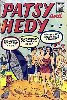 The humor-comic version of Patsy (left) in Patsy and Hedy #72 (Oct. 1960), a spinoff of the flagship title Patsy Walker. Cover art by Al Hartley.[19]