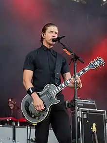 In the summer of 1997, Banks reconnected with fellow NYU undergrad Daniel Kessler, whom he had met previously on a study abroad program in Paris.[13] Kessler then asked Banks to join Interpol, a band he had started with bassist Carlos Dengler and drummer Greg Drudy. Banks was initially not inclined to join a band as he had been writing songs as a solo artist, but eventually joined Interpol as a guitarist and vocalist after listening to the type of music they were making.[10][14] Beginning with Interpol's fifth album, El Pintor, Banks has also served as the band's bassist.[15] In the music video for the album's lead single "All the Rage Back Home", he can be seen playing a Fender Precision Bass.