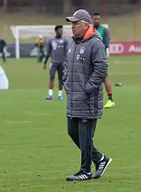 Clement was hired by Bayern Munich in June 2016 as their assistant manager, again working alongside Ancelotti.[30] He helped Bayern to win the 2016 DFL-Supercup, beating Borussia Dortmund 2–0.[31] Whilst at the club, Clement and Ancelotti changed their usual coaching method of man marking to resemble the zonal marking employed by former Bayern manager Pep Guardiola.[32] As of December 2016, Clement and Ancelotti only lost one match during their time in the Bundesliga.[33]