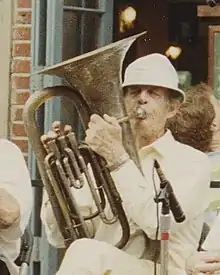 Soon after his arrival in New Orleans, Crawford became co-bandleader of the Crawford-Ferguson Night Owls, with Leonard Ferguson. The band frequently performed on the steamboat President.[4] He made his first recordings in 1957 with the Lakefront Loungers.[5] During this time, Crawford's principal musical instrument was the trombone.[6] Many of his gigs at that time were non-paying. Crawford participated in jam sessions at the New Orleans Jazz Club. He also performed at times with Sharkey Bonano. He obtained a regular paying position with bandleader Paul "Doc" Evans.[1]