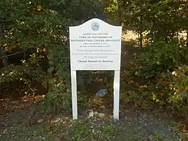 Cuffee was particularly active with the native communities in the areas of Hampton Bays and Montauk, and with his own Shinnecock community, establishing prayer meeting grounds where members of the native communities could meet safely, engage in discussion, and practice spirituality. To this day, his own Shinnecock tribe still gathers for prayer at their ceremonial "June Meeting."[3] His grave marker, erected by the New York Missionary Society, can still be found on Shinnecock tribal land in the Hampton Bays area. It reads, "In memory of the Rev. Paul Cuffee, an Indian of the Shinnecock tribe, who was employed by the Society for the last thirteen years of his life, on the eastern part of Long Island, where he labored with fidelity and success. Humble, pious and indefatigable in testifying the gospel of the grace of God, he finished his course with joy on the 7th of March, 1812, aged 55 years and 3 days.”[4]