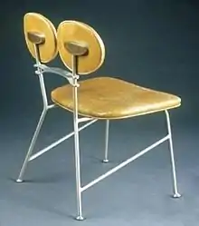 In 1948, László joined with George Nelson, Charles Eames and Isamu Noguchi to design for the Herman Miller company. The furniture lines presented by Herman Miller from 1948 have been called the most influential groups of furniture ever manufactured. Nevertheless, László was not pleased with the arrangement and the relationship ended in 1952. Starting in 1941 and continuing for over 25 years, László maintained his design studio at 362 North Rodeo Drive in Beverly Hills. László rented the entire building from the owner when it was still incomplete and he immediately took on the task of designing the interiors, the exterior details and all of the furniture complete with fabrics. The studio also had a small area showcasing his work and helped him achieve even greater prominence. He designed department stores for Bullock's Wilshire, Goldwaters, Robinson's,[4] Saks Fifth Avenue, Halls (Crown Center, Kansas City), Hudson's Bay and Ohrbach's.[5] Also, he designed many of the casinos and showrooms in the Howard Hughes-owned hotels in Las Vegas. László achieved further fame with his elegant bomb shelter designed for John D. Hertz.[6][7] He also conceived "Atomville,"[8] a futuristic underground city,[9][10] of which a later version was proposed in a letter to the U.S. Air Force.[11]