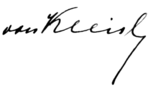 After his capture by the Americans, Kleist admitted that in the winter of 1941 to 1942 he was aware of rumors that Jews were being deported in order to be assembled somewhere, he was also aware of antisemetic actions such as the Lviv pogroms.[39] However, according to him he did not believe rumors of atrocities committed by German forces on the Eastern Front, as he was reassured that they were just rumors or that "non-Germans had done these beastly things".[6][38] He claimed that in January 1943, after he heard that Jews were to be murdered in his territory, he called for SS police chief Gerret Korsemann and told him that he "would not tolerate any actions against the Jews", and that Korsemann subsequently denied he had any orders to do so.[38] He further claimed that he had only heard of the atrocities committed in Auschwitz after the war, although he was aware of the Oranienburg and Dachau concentration camps, where some of his friends and relatives were interned for political reasons.[38]