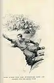 General-interest magazines[16] were once very popular with mainstream audiences.[17] One of them was the historically significant Collier's, which had a revival under editor William L. Chenery in 1925.[18][19] Martin drew many of its covers during the mid-Roaring Twenties, including seven in 1925 (twenty 1923–27). Two of them were for Christmas issues (1924, 26). Some artists created a career niche, such as in drawing comical situations, domestic follies, political satire, pretty women, or simple pleasures.[20] His recurring theme was of a youthful boy engaged in various lighthearted activities or situations. This included the following:[21] catching a baseball, loading up on desserts (pictured below), playing the flute,[22] decked out in a straw hat, shooting marbles, shoveling snow, carrying books on head, winding up a spinning top, eating turkey, bobbing for apples, playing football (pictured), sleigh riding, happily swimming, getting hair shaved, saying grace, working as a messenger, daydreaming about fishing[23] and going down a water slide.[24] He rarely veered from that subject matter. The most striking departure was for a self-portrait cover. He portrayed himself as a well-dressed, vocal spectator at the horse races.[25]