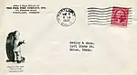 Fisk retailers used Martin's lively figure on their data books,[124] display windows,[125] letterheads, and mailing envelopes (pictured).[126] It showed up in miniature form in The American Boy and Boys' Life magazines[127] (along with hundreds of newspapers)[128] from 1930 to 34. However, advertisements by Fisk and its dealers were fairly rare from 1931 to 36. Two-thirds of its dealers did not meet the new financial requirements, and thereby lost their franchise in November 1930.[129] This drastic corporate downsizing was done to cut operating costs. It followed three consecutive years of declining sales and mounting debts.[90] The Great Depression had devastated the entire rubber industry through fierce price wars. They were already taking place due to competition from mail-order houses.[130] Martin's figure was never firmly established with a strong promotion campaign, involving significant (yet necessary) expenditures.[131] Fisk defaulted on interest payments to bondholders and entered receivership in January 1931.[132] The restructuring process ended with the naming of a new management team, May 1933. They decided to go back to the original character based on public sentiment in late 1934.[133] This was an unusual regression, as other companies had successfully modernized their own mascots (some multiple times).[131]