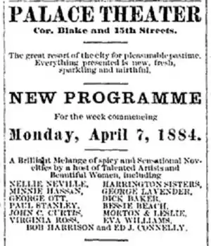 Stanley's vaudeville career included a stint with Wright's Comedians in a two-man act with Jay Brennan;[3] an act billed as "Paul Stanley and his Mother-in-Law" at the Milwaukee Theatre;[4] solo performances called "character changes" with the London Theatre Specialty Company at Boston's Lyceum Theatre;[5] and performances billed as "Paul Stanley, the international comedian" at the Atlantic Garden in Brooklyn, New York.[6] Stanley's claims to be the writer of the music for Henry F. Sayer's production of Tuxedo are discussed and rejected in several sources that conclude that he was not the writer.[7]