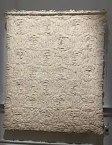 Villinski is best known for his sculptural wall works. In the early nineties he began collecting discarded beer cans and cutting them into butterfly shapes.[4] His wall works utilize hundreds of individually cut butterflies mounted into different organic compositions. He has also developed works to include other motifs of flight including bird sculptures, first made from abandoned record albums found after Hurricane Katrina.[5] Later he transformed his entire record collection into artworks.[6] Much of Villinski's work, including his butterfly sculptures and Comforter (1994), grapple with the artist's struggle with addiction and substance abuse.[7]