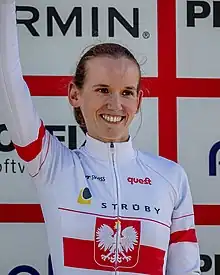 Paula Gorycka (born 5 November 1990 in Kraków[7]) is a Polish cross-country mountain bike,[8] road and cyclo-cross cyclist with two medals from the MTB World Championships and one medal from the MTB European Championships.[9]