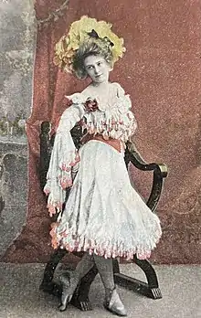 In the Autumn of 1906 she played the lead role in Chevalier's wordless play "The Scapegoat", and the following year was a big hit in "A Little Japanese Girl" at the Duke of York's. In 1908 she played in Paris, first in "Peter Pan" at the Vaudeville then at the Theatre des Arts in Pantaloon.