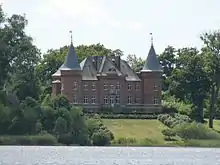 According to genealogist S.H. Finne-Grønn, the family is most likely descended from Hans Olufsson (died 1570), a canon at St Mary's Church, the royal chapel in Oslo.[3][4] As indicated by his patronymic, Hans Olufsson's father was named Oluf. Due to his career as a member of the royal clergy, Hans Olufsson almost certainly had a privileged family background. Most canons in Norway at the time were recruited from the lower nobility, and normally studied at universities abroad, which was normally only possible with an affluent background. Hans Olufsson served as a canon at St Mary's Church and a member of its cathedral chapter until it was merged with that of Oslo Cathedral in 1545, following the Reformation. St Mary's Church was a powerful political institution as the seat of government of Norway at the time, as its provost was also the Chancellor of Norway with one of the canons serving as Vice-Chancellor. Its clergy held high aristocratic rank ex officio, as decreed by Haakon V of Norway in a 1300 royal proclamation, with canons holding the rank of Knight[13] (the highest rank of nobility in Norway since 1308), and were granted significant privileges. Hans Olufsson held a prebend (estate held for his lifetime), the prebend of Saint Mary's altar sub lectorio, also known as the prebend of Dillevik,[14] that included the income of 43 church properties (36 huder, hides) in Eastern Norway. After 1545, Hans Olufsson served as a priest at Oslo Cathedral, but retained his prebend affiliated with the estate of St Mary's Church. He died on the night between 17 and 18 September 1570 and was buried in Oslo Cathedral on 19 September. Following his death, his prebend passed to Jens Nilssøn, the noted Oslo humanist and later Bishop of Oslo.[4]