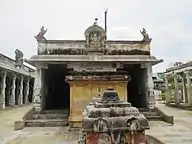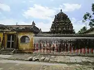 The temple is believed to have been built by the Cholas, with later contributions from Medieval Cholas and Vijayanagara kings. The temple has three inscriptions on its walls, two dating from the period of Kulothunga Chola I (1070–1120 CE) and one to that of Rajadhiraja Chola (1018-54 CE). A granite wall surrounds the temple, enclosing all the shrines and two bodies of water. There is a seven-tiered rajagopuram, the temple's gateway tower, in the temple.