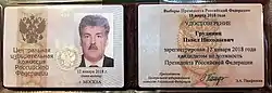 In December 2016, the First Secretary of the Communist party Gennady Zyuganov said that the Communist party has 21 potential candidates for the 2018 presidential elections. Among these candidates was Pavel Grudinin.[2] Despite the fact that on 7 November 2017, Zyuganov said his own nomination was supported by all leftist forces and he would participate in the elections on behalf of the party, the Zhigulyovsk branch of the party voted to supported the candidacy of Pavel Grudinin, who also won the primaries of Left Front, a coalition of left-wing parties with no representation in the State Duma. Grudinin did not deny his nomination from the Communist Party IN 2018.[3] On 21 December it was reported that Zyuganov proposed to nominate Grudinin.[4] Initially the Communist Party and the National Patriotic Forces of Russia (NPFR) planned to nominate a single candidate: Grudinin (supported by the Communists) or Yury Boldyrev (supported by the NPFR). Boldyrev also participated in the primaries of Left Front in which he lost in the second round to Grudinin.[5] According to the Deputy Alexander Yushchenko, Gennady Zyuganov was still among the candidates for the nomination. He named the other candidates as Yury Afonin, Sergey Levchenko and Leonid Kalashnikov. On 22 December Zyuganov, Levchenko and Kalashnikov withdrew their bids, and Zyuganov rejected the candidacies of Afonin and Boldyrev, leaving Grudinin as the sole candidate.[6]