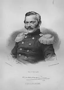 Pavel Petrovich Melnikov (Russian: Павел Петрович Мельников, 3 August [O.S. 22 July] 1804 – 3 August [O.S. 22 July] 1880 in Lyuban) was a Russian engineer and administrator who, in his capacity as Transport Minister, was in a large measure responsible for the introduction of railroad construction in Imperial Russia.