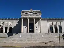 The Classical Revival building features ionic columns, a pediment, egg-and-dart moldings, with high relief panels on its wings.[4] The main façade is closely styled after the north porch of the Erectheion on the Acropolis in Athens, Greece.[4][3]