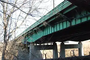 The Pawtucket River Bridge is a twin span, six-lane highway bridge that carries Interstate 95 (I-95) over the Seekonk River in Pawtucket, Rhode Island. The original bridge was built in 1958 and rehabilitated in 1996.[2] The bridge was demolished in 2012-13 and replaced with a new deck arch bridge that was completed in summer 2013.[3] In November 2016, the bridge was officially renamed the James E. Doyle Pawtucket River Bridge in memory of the former mayor of Pawtucket, who died two months earlier.[4]