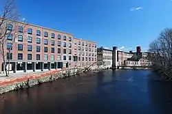 In 1638, Roger Williams purchased the land north of the Pawtuxet, thus founding Providence.[2] In 1642, Samuel Gorton purchased the land south of the river, thus founding Warwick.[2] Collectively, all three branches of the Pawtuxet played an important role in the development of the textile industry in New England, which utilized the river system for hydromechanical and later early hydroelectric power during the 19th century. Located on the lower Pawtuxet were the Natick Mill in West Warwick, the Bellefonte Mill in Cranston and the Pontiac Mill in Warwick, which was the original manufacturing facility of the Fruit of the Loom Company.