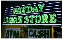 A payday loan (also called a payday advance, salary loan, payroll loan, small dollar loan, short term, or cash advance loan) is a small, short-term unsecured loan, "regardless of whether repayment of loans is linked to a borrower's payday."[1][2][3] The loans are also sometimes referred to as "cash advances," though that term can also refer to cash provided against a prearranged line of credit such as a credit card. Payday advance loans rely on the consumer having previous payroll and employment records. Legislation regarding payday loans varies widely between different countries and, within the United States, between different states.[4]