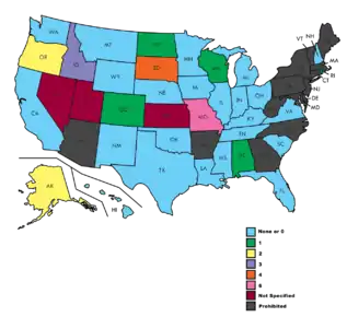 Payday lending is legal in 27 states, with 9 others allowing some form of short term storefront lending with restrictions. The remaining 14 and the District of Columbia forbid the practice.[16] Some states have aggressively pursued lenders they felt violate their state laws.[17][18]