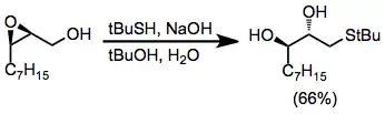 Under aprotic conditions, nucleophilic opening of epoxide isomers can be achieved with hydrides or organocuprates. Nucleophilic attack generally takes place at the least substituted carbon, yielding the more substituted diol product.[10]