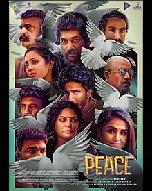 Peace is a 2022 Indian Malayalam-language black comedy film directed by Sanfeer K.[1] The film stars Joju George, Asha Sharath, Mamukkoya and Remya Nambeesan in important roles. “The film tracks the chain of unprecedented events following an hyperlink narrative,” said the director.[1] The Malayalam language version was released on 26 August, while Tamil, Telugu, Kannada and Hindi language versions are awaiting its release.[2][3]