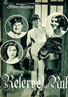 Peace of Mind (German: Reserve hat Ruh) is a 1931 German comedy film directed by Max Obal and starring Fritz Kampers, Lucie Englisch, and Paul Hörbiger.[1] It was shot on location around Berlin. The film's sets were designed by the art director Jacek Rotmil. It is one of a number of farces set during the pre-First World War Germany military which were made in the early 1930s.