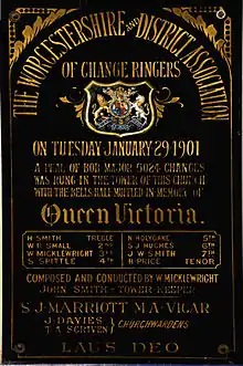 A peal board records on a wooden, metal, stone or canvas plaque a peal rung on church bells.