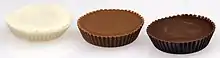 Peanut butter cups made with white, milk, and dark chocolate