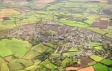 The present village of Peasedown St John is relatively modern. 'A place known by the name of The Red Post' was how the scattering of buildings was referred to in 1768,[5] taking its name from the local Public House. The hamlet of Carlingcott on the north-west edge of Peasedown is known to have existed before 1800 but the main modern development in the area began in the 19th century when the Somerset Coalfield was greatly expanded as the Industrial Revolution increased demand for coal across England. By the early 1840s there was still no discernible village, except a few cottages around the Red Post[6] and a small number of buildings along what would become the Bath Road,[7][8] near a field named "Pease Down" (now Highfield Road).[9] The 1841 census lists about fifteen households with around eighty people living at "Peas Down", mostly coal miners, with some agricultural labourers, two carpenters, a seamstress, and a stonemason.[10] The sinking of the Braysdown colliery in 1845 meant that accommodation had to be built for the enlarged workforce to work the new pit and expansion of the village was now inevitable.[11]