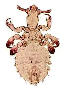 Pedicinus is a genus of sucking louse, the only genus in the family Pedicinidae.[2] Species belonging to this genus are found on Old World monkeys and apes of different kinds.[3][4] Pedicinus, along with its sister genus Pthirus, are believed to have diverged from their common ancestor approximately 22.5-2.5 million years ago.[5]