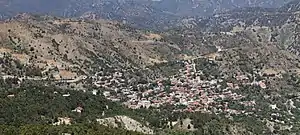 Pedoulas (Greek: Πεδουλάς) is a village in the Nicosia District of Cyprus, located at an altitude of 1,100 metres (3,600 ft) in the Troodos Mountains, 4 km south of Moutoullas. It lies in Marathasa Valley.[1] The name is derived from the words pediada (valley) and laos (people).[2] It is popular summer resort.[1]