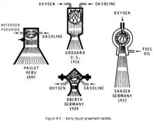 Paulet's work was unknown prior to 27 October 1927, when the Peruvian newspaper El Comercio published a letter he wrote, in which he said that he conceived a "rocket airplane project" nearly 30 years prior.[21] Paulet said that his rocket motor was made of vanadium, weighed 2.5 kilos, was fueled by nitrogen peroxide and gasoline, which produced three hundred explosions per minute and had ninety kilograms of thrust.[22][23]
