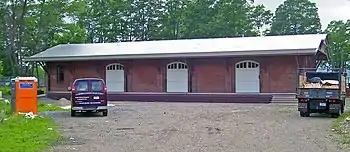The first depot was built of wood around 1850 by the Hudson River Railroad to handle freight shipments into and out of what was then a busy industrial Hudson River city.[2]) Around 1890 the present brick depot was built by the New York Central Railroad; at that time its platform had extensions to the north and south along the tracks.[1] There are some reports of fires in the 1880s and again in 1898; and blistering of the interior paint at roof level gives evidence that there was one.[2]