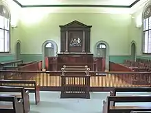 Peel County sat at the Courthouse until 1973 and then became home to Peel Regional Council from 1973 to 1980 (then moved to the 10 Peel Centre Drive). For a time, the Peel Museum and Art Gallery occupied the building, before the Peel County Jail and Registry Office were renovated to become the Peel Heritage Complex, now known as the Peel Art Gallery, Museum and Archives.[2] Despite a renovation in the 1990s, the courthouse remained inaccessible to the public on a daily basis. After an extensive renovation, currently active, it will host staff offices, a board room, and the Art Gallery of Peel's public reference library. The Courtroom and Council Chamber will be available for rentals.[3]