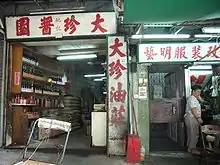 Wai Siu-pak, founder of Yee Tin Tong pharmacy, once lived in Wise Mansion, a large house at the top of Peel Street next to Robinson Road. The section of Peel Street between Hollywood Road and Staunton Street was known for its calligraphers specialised in making signboards in the 1950s and 1960s.[2] The part below Hollywood Road was well known for its Indian curry restaurants. However, expensive rents have driven these trades out of the area, which is now populated by modern tower blocks. The century-old Graham Street market is situated at the lower reaches of Peel Street.[2]