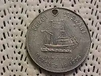 After the American Revolutionary War, citizens of Maryland came to view the burning of Peggy Stewart as an act of heroism, considering the angry crowd who demanded the burning to be devoted patriots for their resistance of the British Tea Act. On October 19, 1904, the city of Baltimore commemorated the event with The Burning of the Peggy Stewart, a mural by Charles Yardley Turner (1850–1919), painted on the west wall of the Criminal Court Lobby in the Clarence M. Mitchell, Jr. Courthouse.[14] On October 19, 1974, the Bicentennial Council of the 13 Original States created a silver ingot honoring the two-hundredth anniversary of the burning. The incident is also honored by "Peggy Stewart Tea", a blend sold by Eastern Shore Tea Co. The burning is honored each year by a ceremony in Annapolis. The story was recounted in a children's book Ahoy, Peggy Stewart by Maud Esther Dilliard, published by Dutton, 1956.