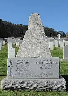 She was born Cornelia Thomas Elliott on September 2, 1917, in New York City[1] to Thomas Ketchin Elliott, Jr. and Cornelia Ligon Elliott.[2] She graduated from Emma Willard School.[3] On September 23, 1939, she married John W. Haslett,[3][4][5] changing her name to Cornelia Elliott Haslett.[6] In 1942, she graduated Phi Beta Kappa from Barnard College.[7] In 1945, she moved to San Francisco[8] to work as a copywriter for J. Walter Thompson.[2] In 1946, she met Edgar Arthur Wayburn. Cornelia and Edgar went hiking on Mount Tamalpais for their first date, and they married less than six months later[9] on September 12, 1947.[10]