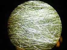 Pele's hair (closest modern Hawaiian translation: "lauoho o Pele"[1]) is a volcanic glass formation produced from cooled lava stretched into thin strands, usually from lava fountains, lava cascades, or vigorous lava flows. It is named after Pele, the Hawaiian goddess of volcanoes.[2]