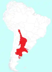 The sediments of the Paraná Formation where P. paranensis was found represents littoral to marine facies of the Paranaense Sea, a shallow inland sea which covered parts of Argentina, Bolivia, Uruguay, Paraguay and southern Brazil in the middle and late Miocene.[1] A diverse fauna of marine life is known from the formation, including rays and sharks such as Cosmopolitodus hastalis, Otodus megalodon, Hemipristis serra and Megascyliorhinus trelewensis,[3][4] as well as physeteroid cetaceans.[5] Continental vertebrates have also been found in the Paraná Formation, including the rodents Plesiacarechimys and Cardiatherium, the pampatheriid Scirrotherium and an indeterminate flamingo of the genus Phoenicopterus.[6]