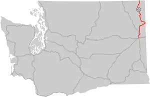 Primary State Highway 6 (PSH 6) began at a 3-way junction with PSH 3, co-signed with U.S. Route 2 (US 2) and US 395, formerly with US 195 and US 10 Alternate, north of Downtown Spokane. From the junction, the highway became co-signed with US 2 (formerly US 195 and US 10 Alternate and traveled northeast to intersect what was US 2 prior to 1955 in Mead. The roadway then turned north, paralleling railroad tracks that belonged to the Great Northern Railway (now owned by BNSF Railway), which it would parallel to Newport.[2][3] At Colbert, an overpass over the road served another Great Northern Railway line where the current BNSF Railway left PSH 6; from Colbert, the roadway passed Chattaroy and Milan before it left Spokane County to enter Pend Oreille County.[2][3]