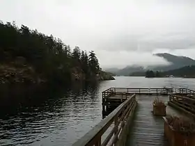 Pender Harbour is a harbour community on British Columbia's Sunshine Coast, on the east side of Malaspina Strait.[1] The harbour itself is an intricate amalgam of bays and coves that encroach inland for five kilometres and provide over 60 kilometres of shoreline. Once a steamer stop, a fishing village, and an important logging and medical waypoint,[2] it is now an unincorporated community within the Sunshine Coast Regional District (SCRD).