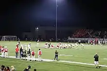 In 1954, officials at Brighton School District #1, which operated Brighton High, informed Indian Landing officials that their high school was reaching capacity and could not assure that the high school would accept new Indian Landing students after 1955.[46] The Indian Landing district had only two alternatives: build their own small high school, which would have been expensive, or be annexed by Penfield Central, located to the east. The merger would significantly increase the student population of the enlarged school district, as the Indian Landing student population (over 800 in 1953 [47]) was nearly as large as the entire Penfield Central population. The Indian Landing district voted for the annexation in April 1954,[48] and the voters of Penfield approved the merger three months later.[49]