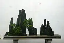 ![]() Penjing in root-over-rock style on display at the Chinese Penjing Collection of the National Bonsai and Penjing Museum in Washington, D.C. | |||||||||||||||||||||