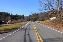 Working its way away from PA 239, PA 118 heads to the northeast through now Jackson Township. The highway continues through the woodlands as a two-lane road, until intersecting with Mountain Road, where the woodlands give way to fields once again. After the intersection with Saddle Brook Road, another long patch of woodlands begins. PA 118, continuing eastward soon comes to another clearing, where it intersects with the northern terminus of Camp Lavigne Road (SR 4049).[3] After intersecting with Schoolhouse Road, the highway re-enters the woodlands, crossing over several bodies of water and turns northeast into Sugarloaf Township. Through Sugarloaf Township, PA 118 parallels several side streets, including Township Road 737, which provides access to one residence. Passing to the south and north of two ponds, the highway begins a parallel and soon merges with PA 487. PA 118 and PA 487 head eastward through Sugarloaf Township, crossing the line into Luzerne County.[3]