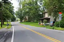 PA 304 begins at an intersection with PA 45 in the borough of Mifflinburg in Union County, heading southeast on two-lane undivided South 4th Street. The road heads through residential areas before crossing into Limestone Township. In this area, the route heads south into open agricultural areas with a few homes, becoming an unnamed road. PA 304 curves southeast and reaches the residential community of Dice, continuing through a mix of farmland and woodland with a few residences. The road turns northeast through more open agricultural lands until it crosses into the borough of New Berlin. At this point, the name of the route becomes and it passes several homes, coming to an intersection with the northern terminus of PA 204. After passing through more of the town, PA 304 heads back into agricultural areas with some residences and becomes County Line Road as it runs to the north of Penns Creek. The route becomes the border between Union Township, Union County to the north and Jackson Township, Snyder County to the south, with the creek turning south away from the road. PA 304 splits from County Line Road and fully enters Union Township as it passes through more rural areas on an unnamed road, running through Dry Valley Cross Roads. The road continues northeast through more farmland with occasional residences before coming to the community of Winfield. Here, PA 304 turns north and passes homes prior to ending at US 15.[2][3]