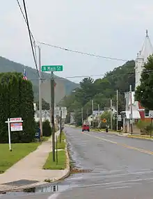After leaving Huntersville, PA 864 turns to the southeast and enters Wolf Township. Through Wolf Township, the route remains a two-lane rural road, passing some residences before returning to dense woodlands near Lower Rynearson Road. The road makes several bends between the south and east before Laurel Run Road, where it turns to the southeast once again. The dense woods continue for another mile before PA 864 enters the borough of Picture Rocks, where it gains the moniker Laurel Run Road through downtown. The route crosses Railroad Street before intersecting with US 220 at North Main Street. This intersection serves as PA 864's eastern terminus. The right-of-way continues four blocks west to Water Street as Elm Street.[2]